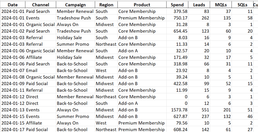 - Identify the business goals (understanding pipeline impact, optimizing budget allocation).